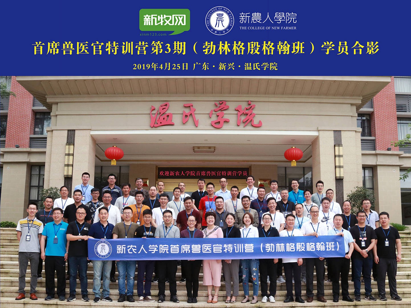 2019年4月23-26日,由新牧网新农人学院联合华南农业大学、温氏股份、勃林格殷格翰动物保健共同举办的中国兽医人才培育计划暨首席兽医官特训营第3期(勃林格殷格翰班)在广东新兴温氏学院落下帷幕,来自华北东北地区,从事养猪生产、兽医技术服务的42名学员在激烈的课题答辩后顺利结业。